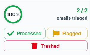 It also shows you how many emails you have triaged out of the total that you have uploaded.