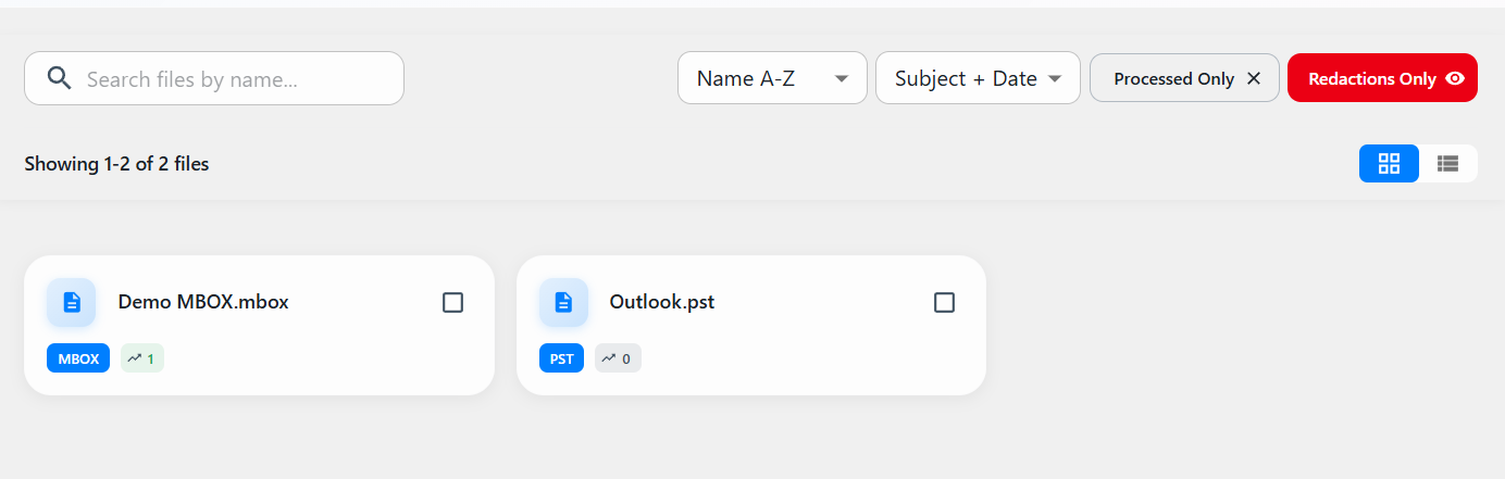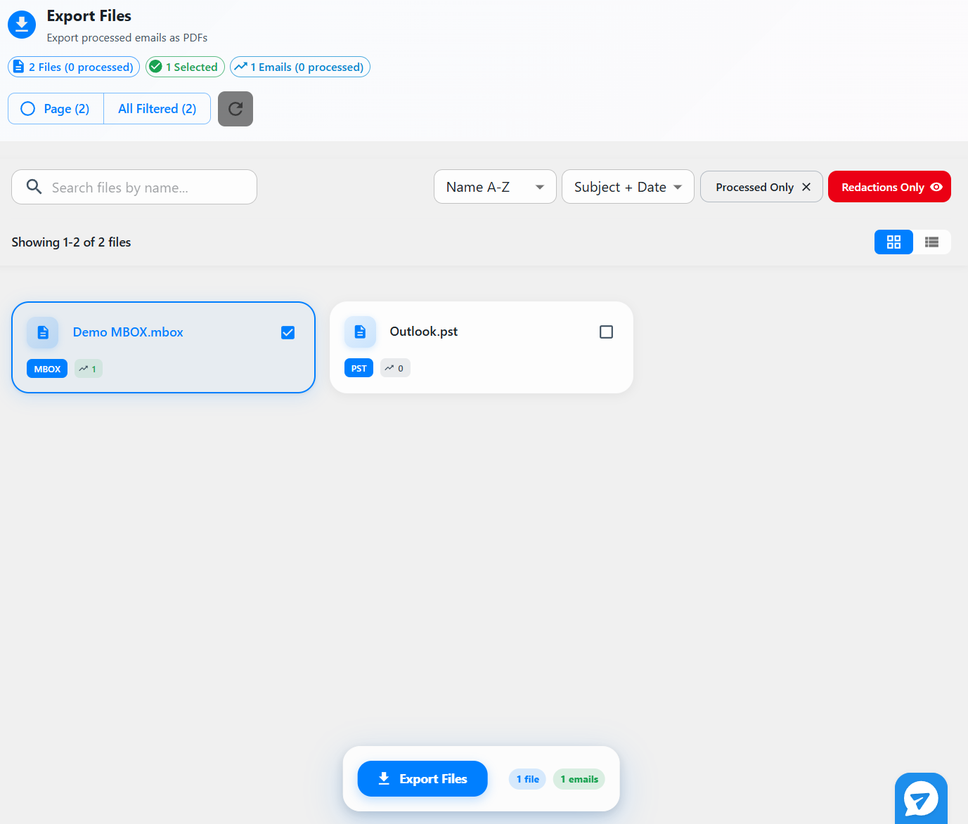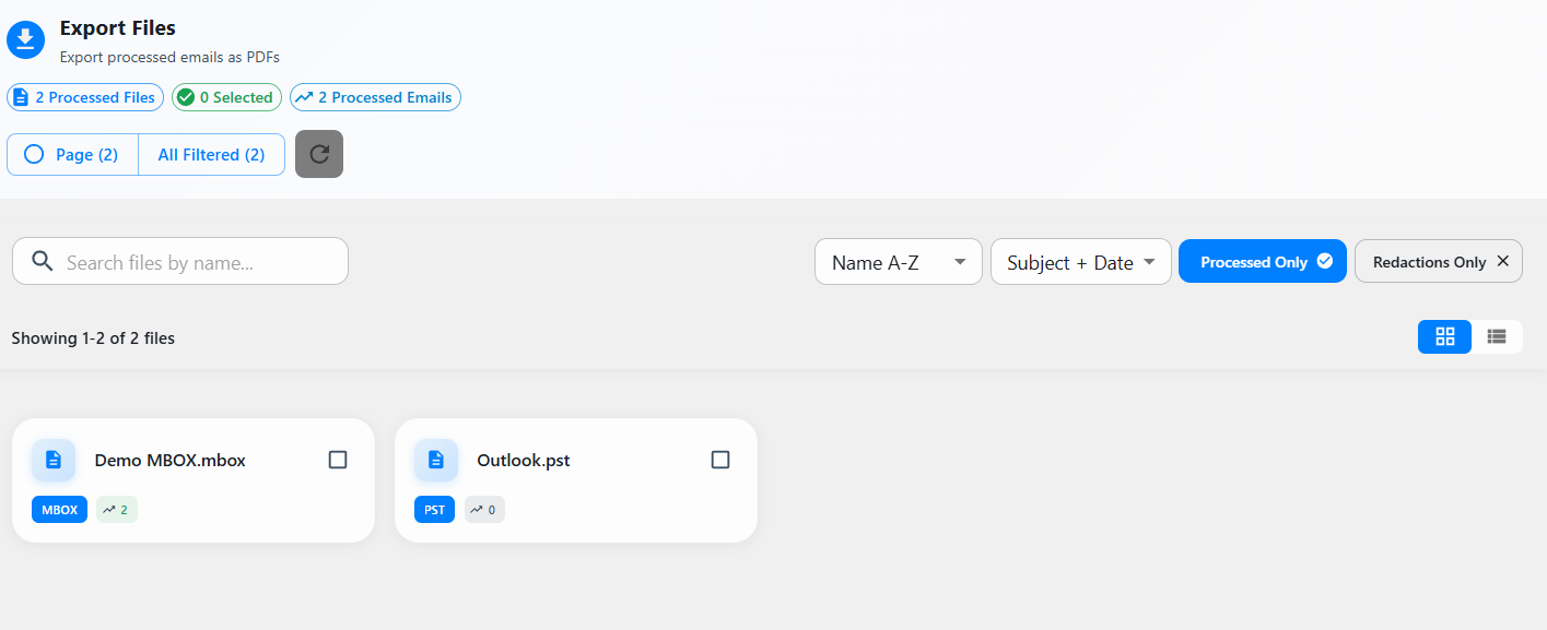 When in export mode, you will be able to see all the files that you have processed in Triage and Redact Mode.