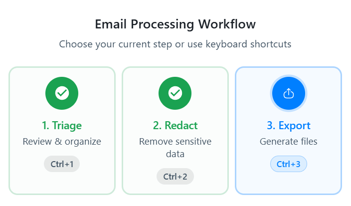 You can deselect "Processed Only" to export all emails, whether they are triaged or not. The indicators of how many emails will change.
