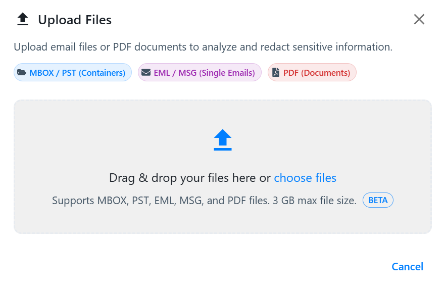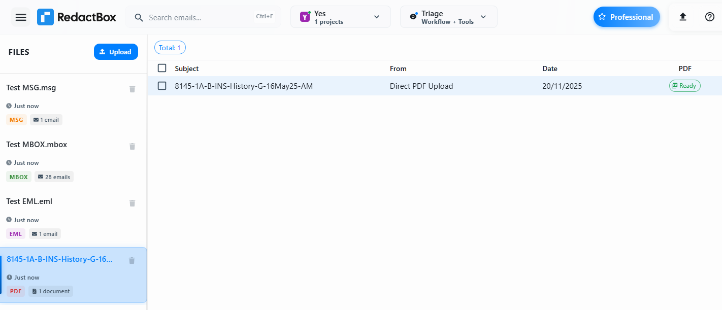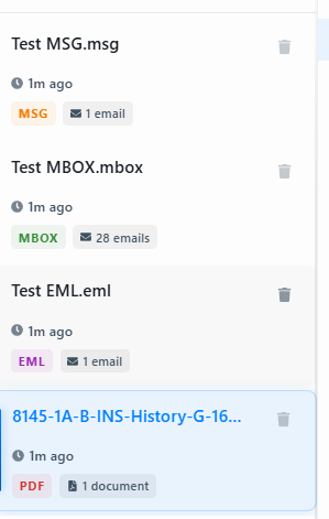 You can see the file type, how many emails or files are in it, and when it was added in the sidebar panel.